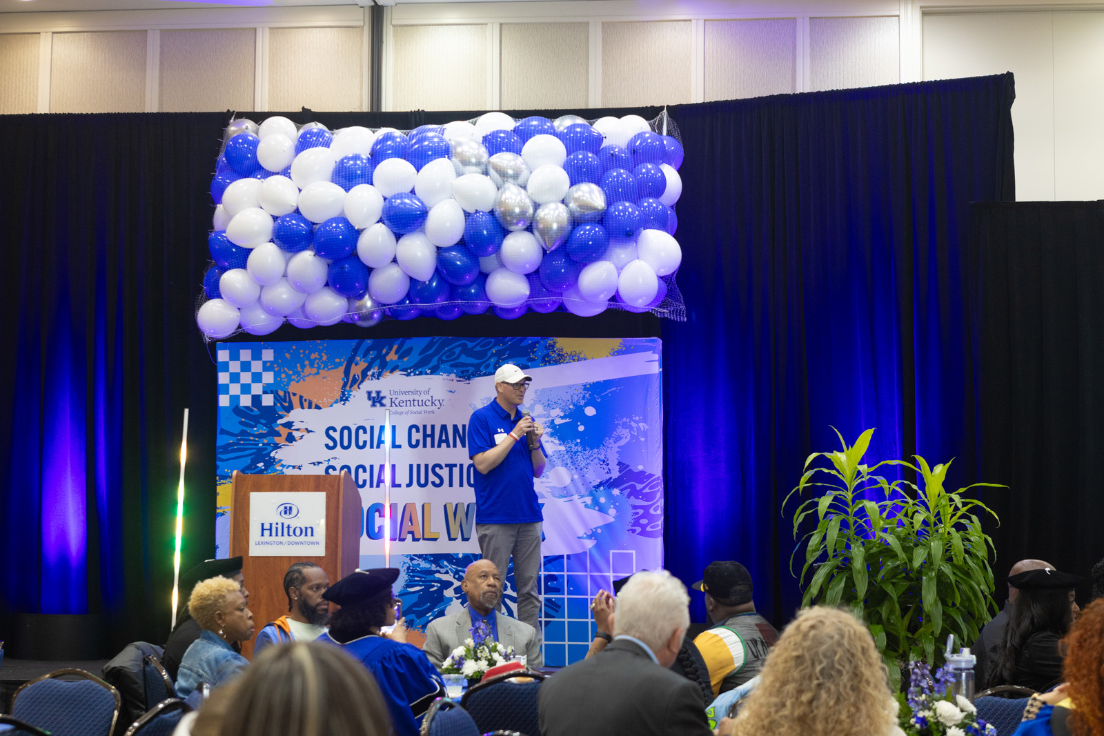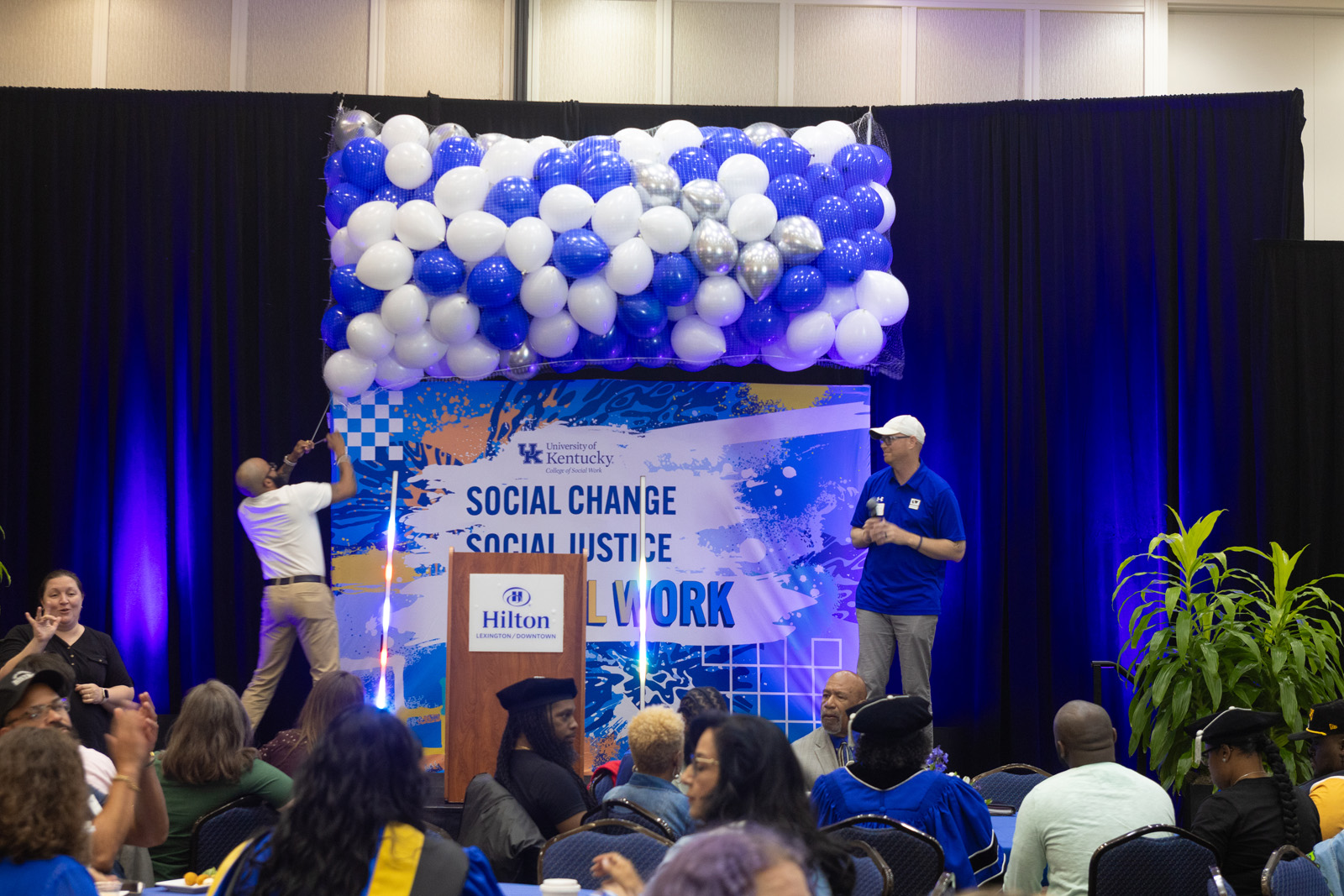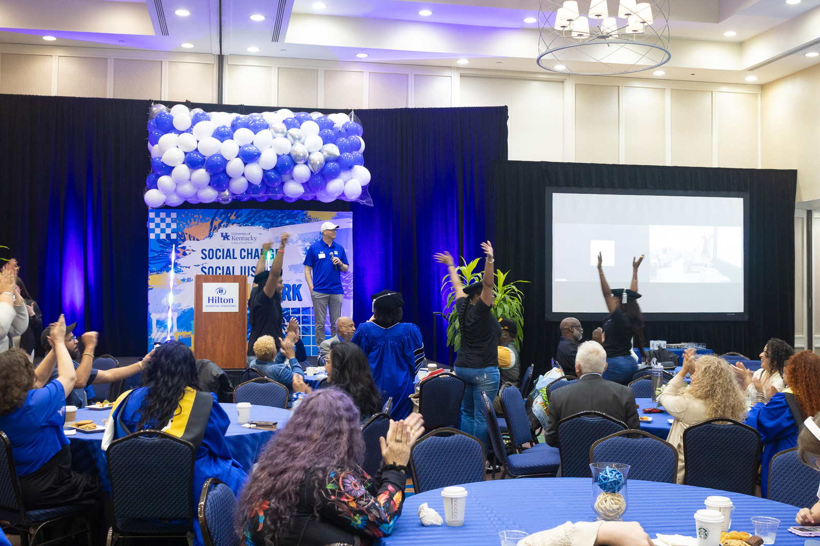 On May 9, 2025, The UK College of Social Work celebrated the accomplishments of its graduating class of 2025. Amidst a backdrop of joy and nostalgia, graduates, faculty, staff, families, and guests came together to commemorate the occasion. The festivities began with a Graduation Celebration Event at the Hilton Hotel in downtown Lexington, KY, followed soon after with commencement at Rupp Arena later in the day.