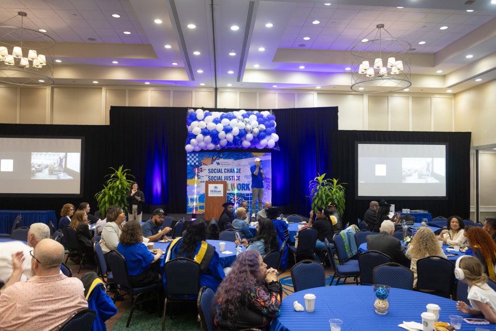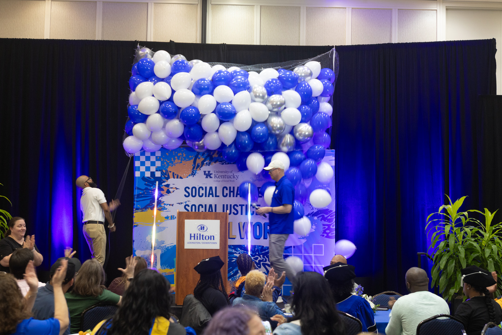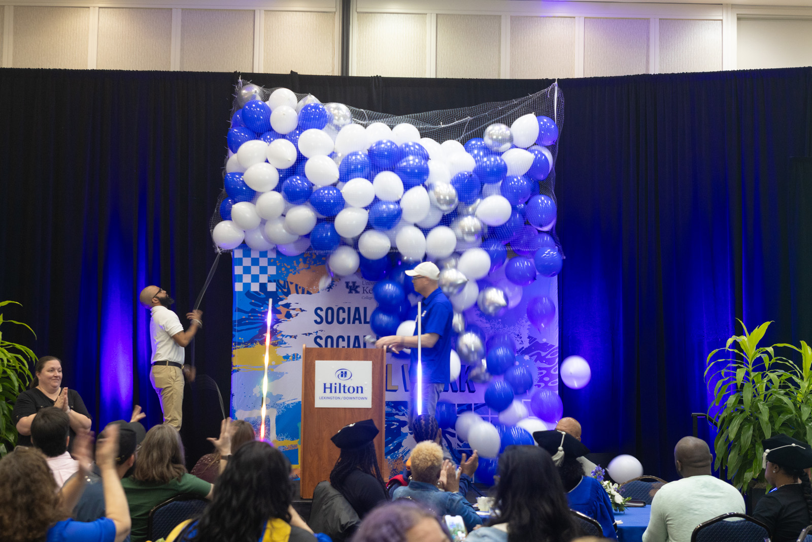 On May 9, 2025, The UK College of Social Work celebrated the accomplishments of its graduating class of 2025. Amidst a backdrop of joy and nostalgia, graduates, faculty, staff, families, and guests came together to commemorate the occasion. The festivities began with a Graduation Celebration Event at the Hilton Hotel in downtown Lexington, KY, followed soon after with commencement at Rupp Arena later in the day.