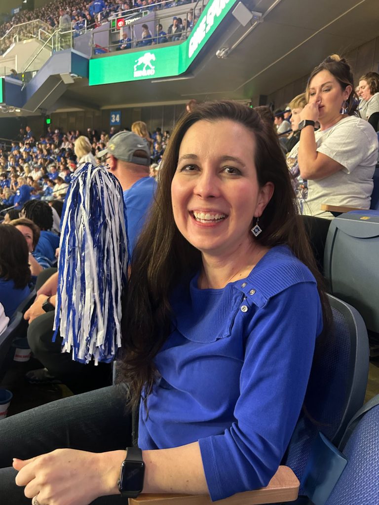 Jaime Wainscott, CoSW Academic Advising Director and graduate from the Bachelor of Arts in Social Work program, attended the game as a current staff member and as an alum of the College.