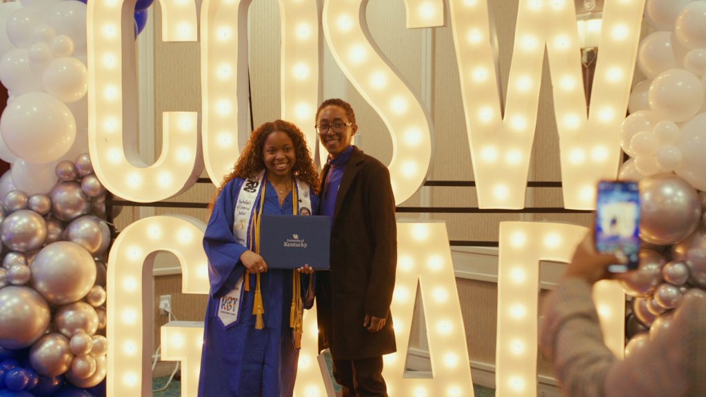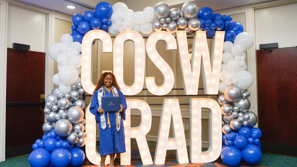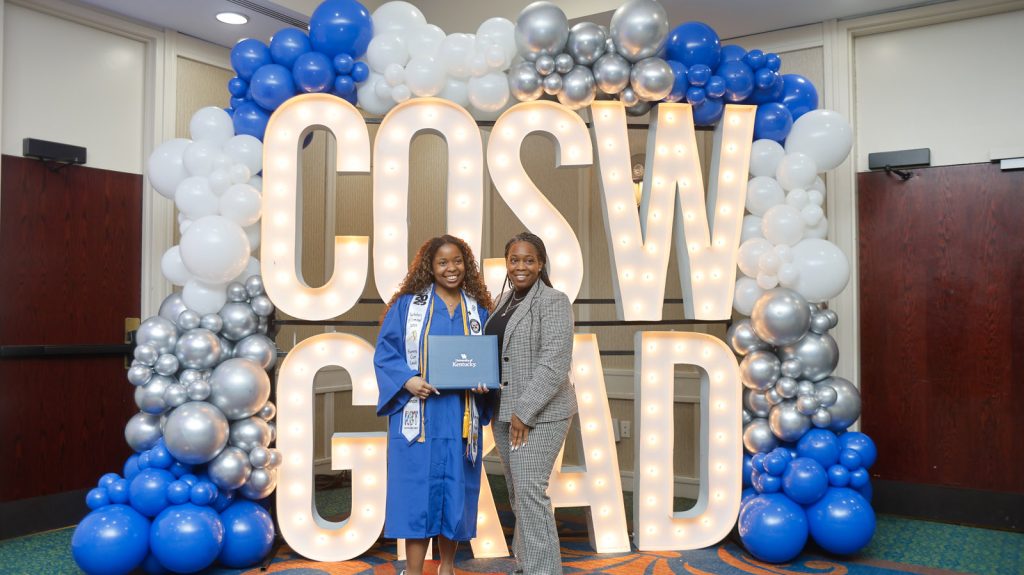 LEXINGTON, Ky. – The University of Kentucky College of Social Work (CoSW) celebrated it’s newest batch of graduates on December 19. After crossing the stage at Rupp Arena and handed their diplomas, graduates and families arrived at the Hilton Hotel to celebrate their achievements with CoSW staff and faculty. Below are pictures of the festivities.