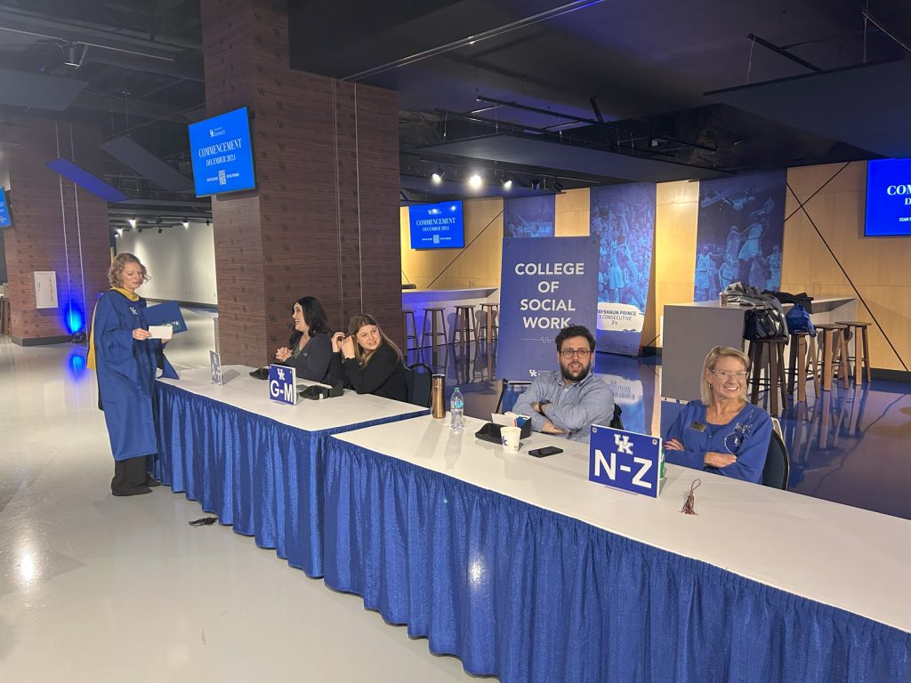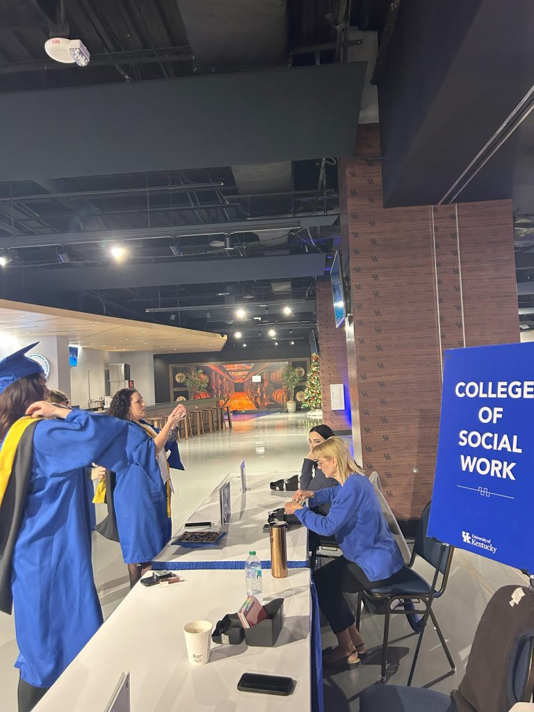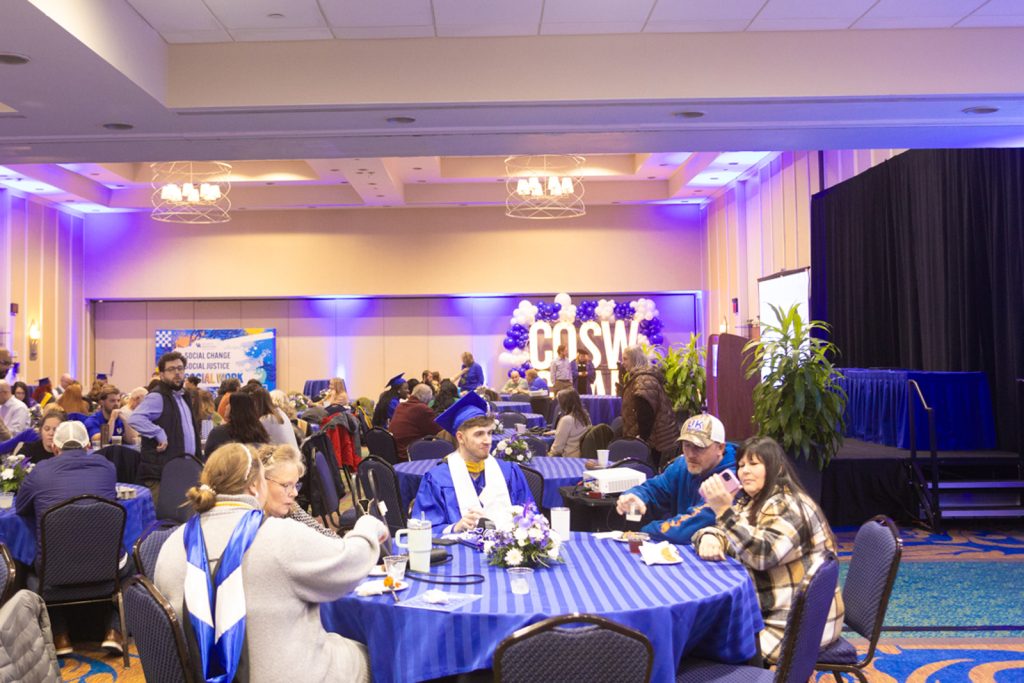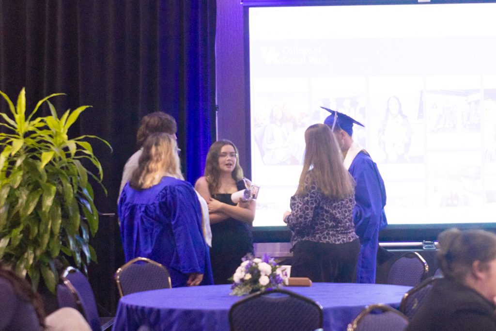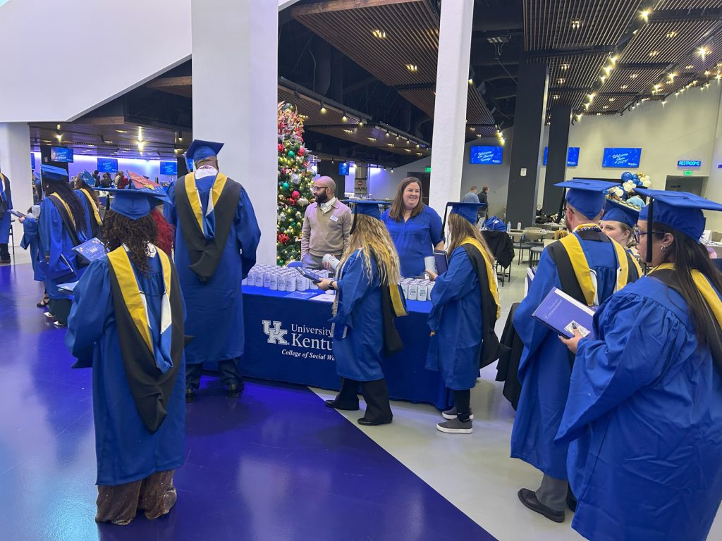 LEXINGTON, Ky. – The University of Kentucky College of Social Work (CoSW) spent a December morning with its newest batch of graduates at the Hilton Hotel on December 20. Earlier in the day, these students were honored for their academic achievements by crossing the stage at Rupp Arena and presented with their degrees by President Eli Capilouto, along with CoSW faculty.