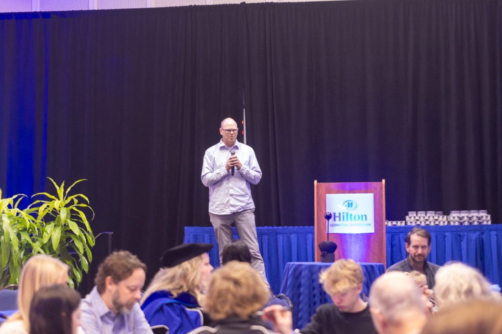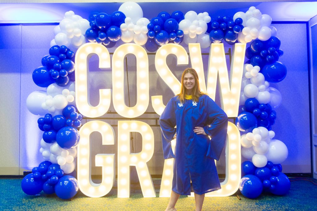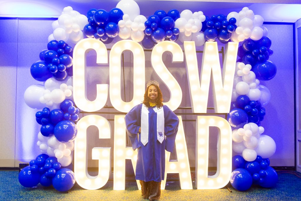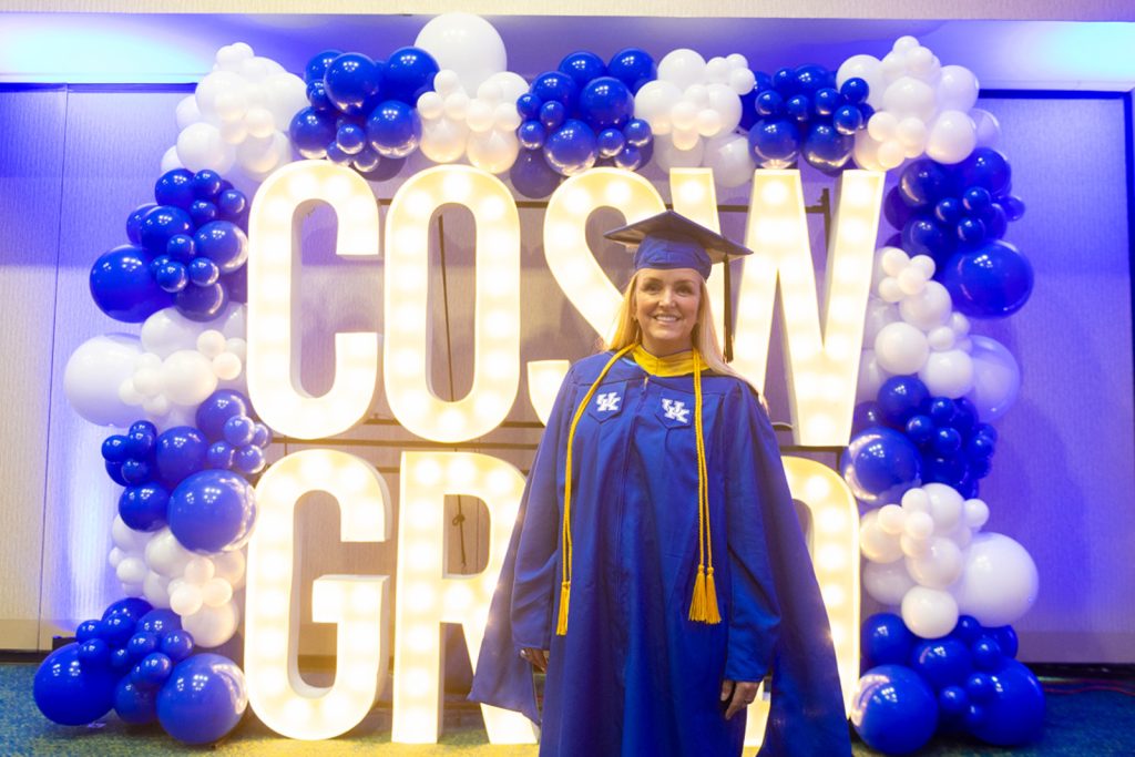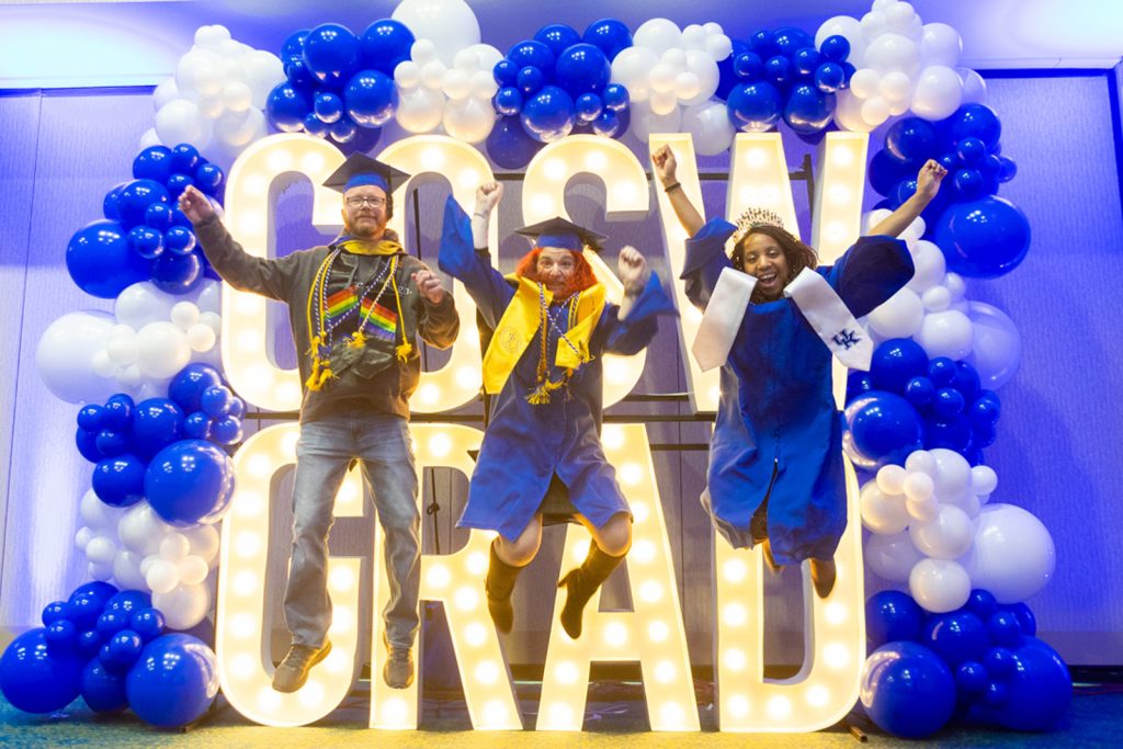 LEXINGTON, Ky. – The University of Kentucky College of Social Work (CoSW) spent a December morning with its newest batch of graduates at the Hilton Hotel on December 20. Earlier in the day, these students were honored for their academic achievements by crossing the stage at Rupp Arena and presented with their degrees by President Eli Capilouto, along with CoSW faculty.