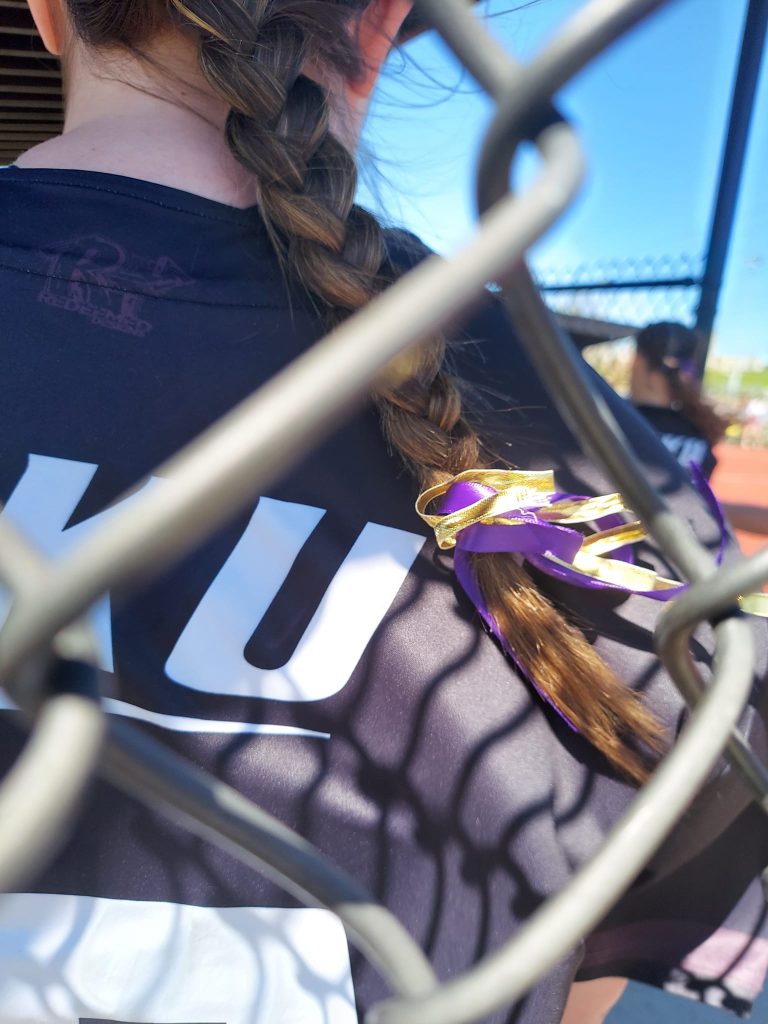 Tracy's niece wearing Purple and Yellow ribbons for her uncle“My cohort immediately had my back with everything I needed. This semester has been chaos – I see the finish line, I’m almost at the end, I feel bittersweet, and I know my husband’s watching me from above and he’s still cheering me on,” said Garrett.